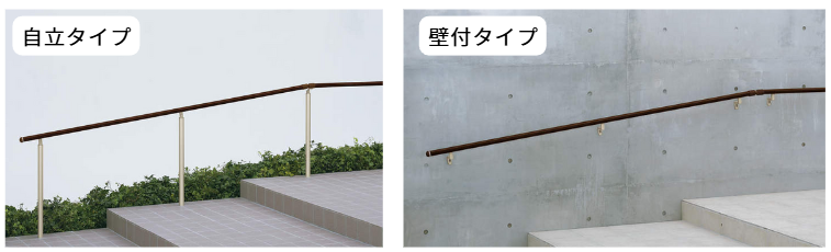 柱を建てる<自立タイプ>と壁面に取り付ける<壁付タイプ>があります。