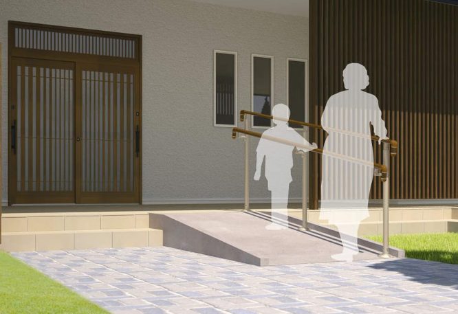手すりを設置することで玄関周りが整った印象になり、住宅の外観が引き締まります。バリアフリー化の一環として、将来的な資産価値にもプラスになります!