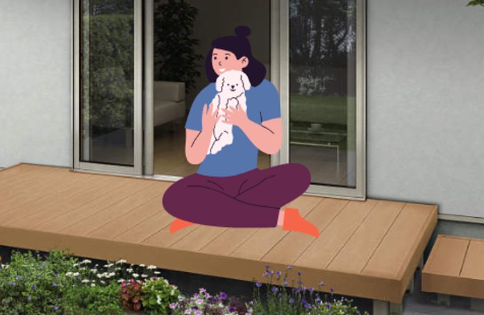例えば、犬が自由に動き回れる安全な通路やフェンスを設けたり、ウッドデッキから犬が遊ぶ様子を見守りながらゆったりと過ごせます。