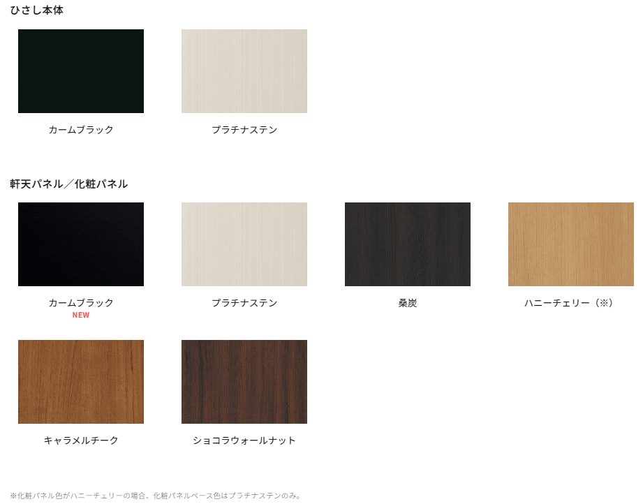 4デザインの化粧パネルとカラーバリエーション