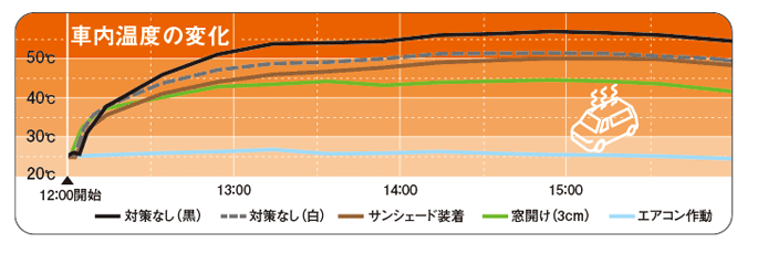 車内が高温になっている時はエアコンで冷やすより効果的です。