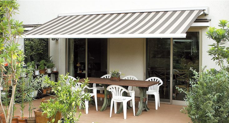 掃き出し窓の上やデッキの上に設置される事が多く、キャンバスのカラーでお家の印象を変えることが出来ます。