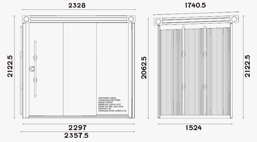 サイズ:間口2,297㎜×奥行1,524㎜×高さ2,122.5㎜