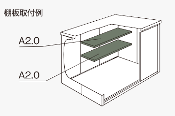 標準付属品:アンカープレート・棚板2枚(A2.0型/後面用、幅1400㎜×奥行380㎜)