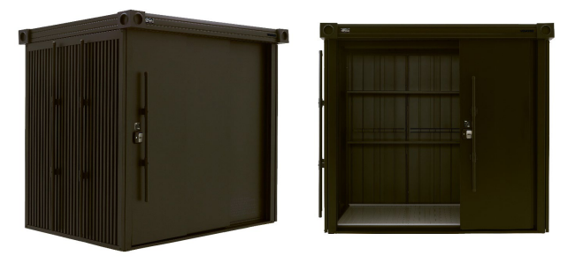 物置が庭や自然に溶け込む“カモフラージュ”を理想とし、本体色には黒みのある「オリーブドラブ(Olive Drab)」が採用されております。