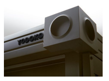屋根まわりの四隅にコンテナのキャスティングボックス(吊具を掛ける部分)を模した装飾です。