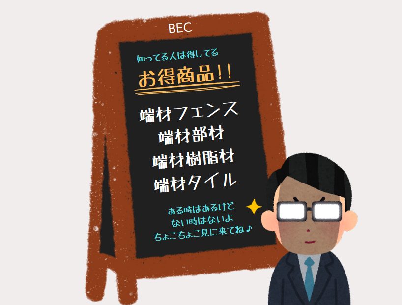 BEC展示場にはその場で購入可能な端材商品を置いています。