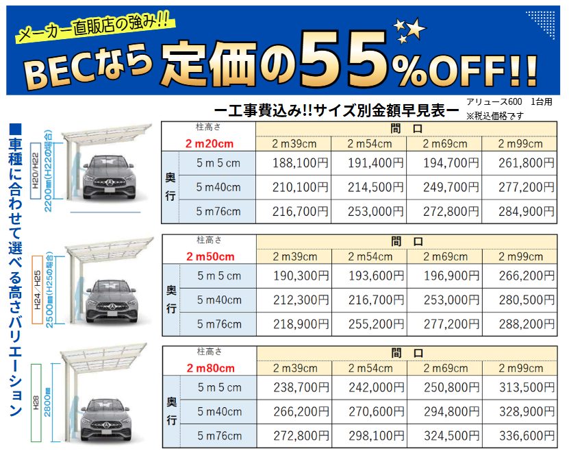 | 商品名 | アリュース600タイプ 1台用 51-24 基準風速V0=34m/s地域まで対応 熱線遮断ポリカ屋根 |