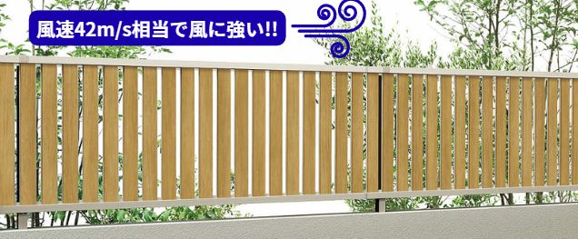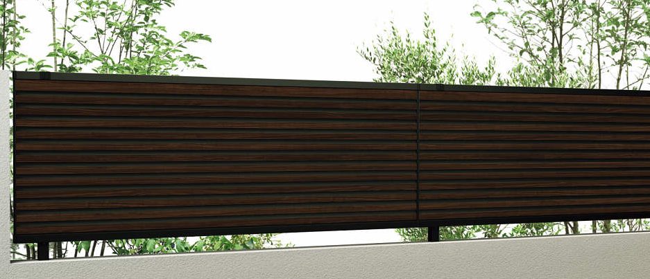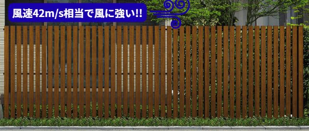 【YKKAP】『強風対策!!』ルシアスフェンスTS2F型 木目調の細いたてスリットが上品なデザイン!! 高さ600㎜~