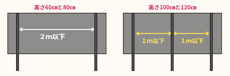 ■フェンスの高さが100㎝と120㎝は柱ピッチ1m以内