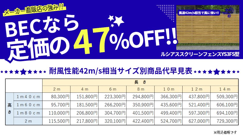 長さ2m分一式の金額です※耐風性能34m/s相当 BEC特価!!