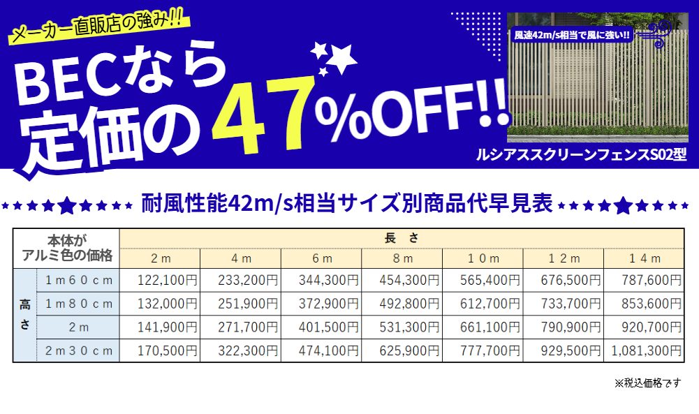 長さ2m分一式の金額です※耐風性能42m/s相当 BEC特価!!