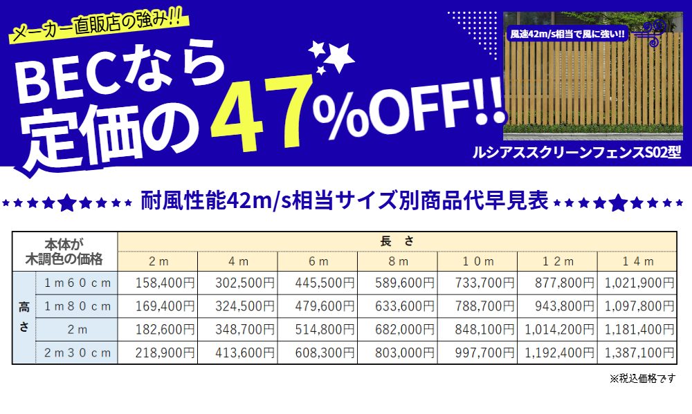 長さ2m分一式の金額です※耐風性能34m/s相当 BEC特価!!