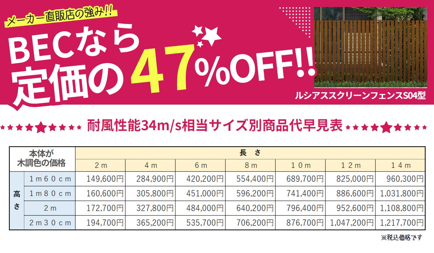 | 商品名 | ルシアススクリーンフェンスS04型 高さ1600㎜~ ※木調色 |