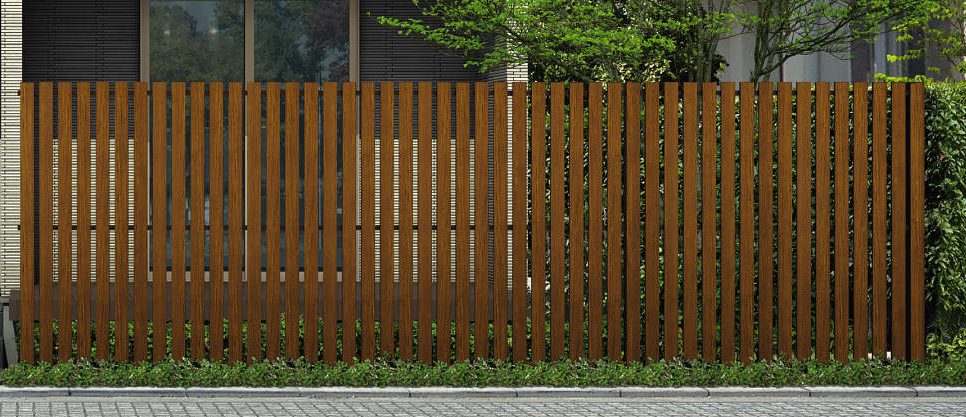 【YKKAP】『強風対策!!』ルシアススクリーンフェンスS04型 太めのたて格子がしっかりと視線をカット!! 高さ1600㎜~ ※木調色