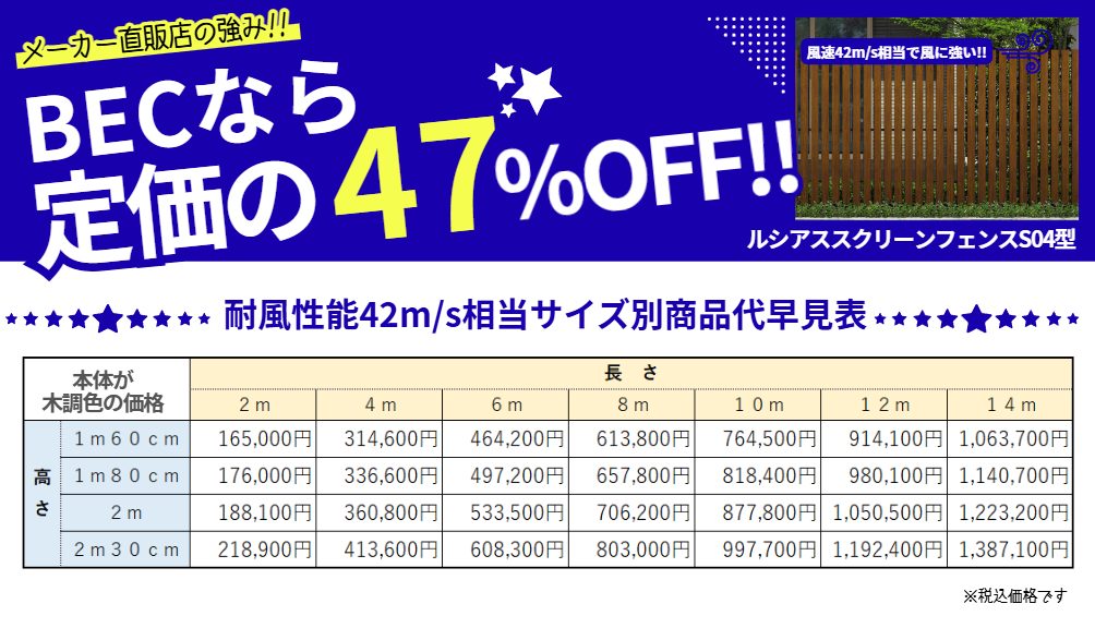 長さ2m分一式の金額です※耐風性能42m/s相当 BEC特価!!