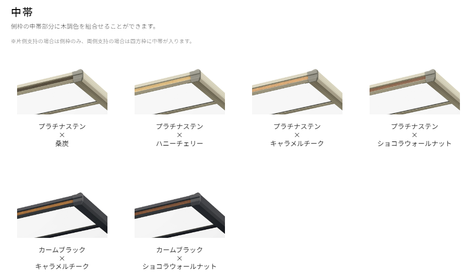 中帯や四方枠部分に木調色を選択することでさらにオシャレに仕上がります♪