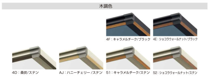 中帯や四方枠部分に木調色を選択することでさらにオシャレに仕上がります♪
