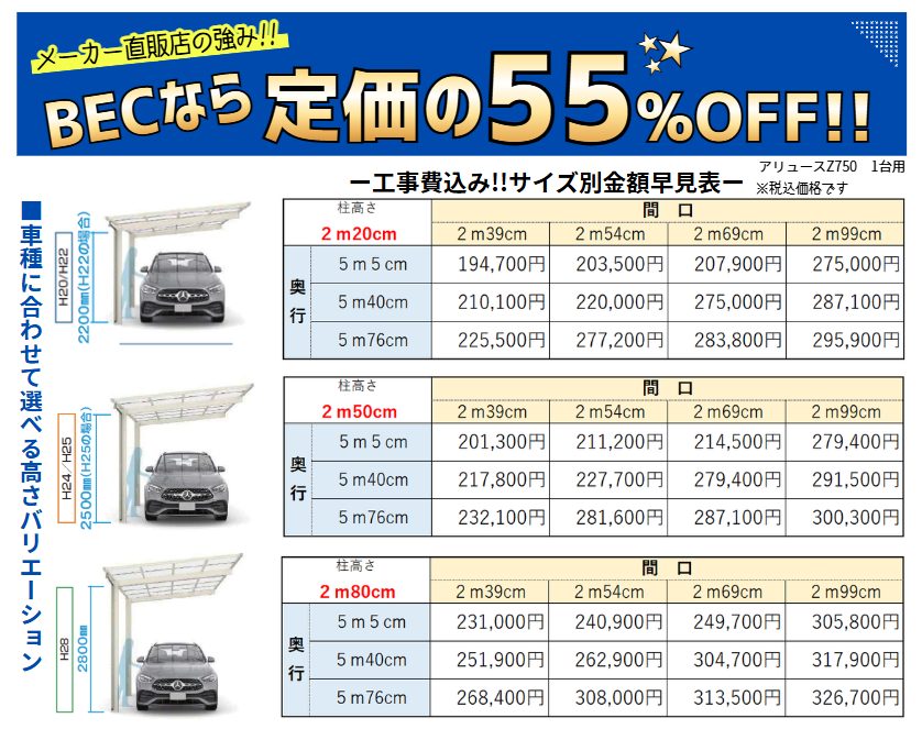 10年買取保証対象商品 強風・台風対策にワンランク上のカーポート!!
