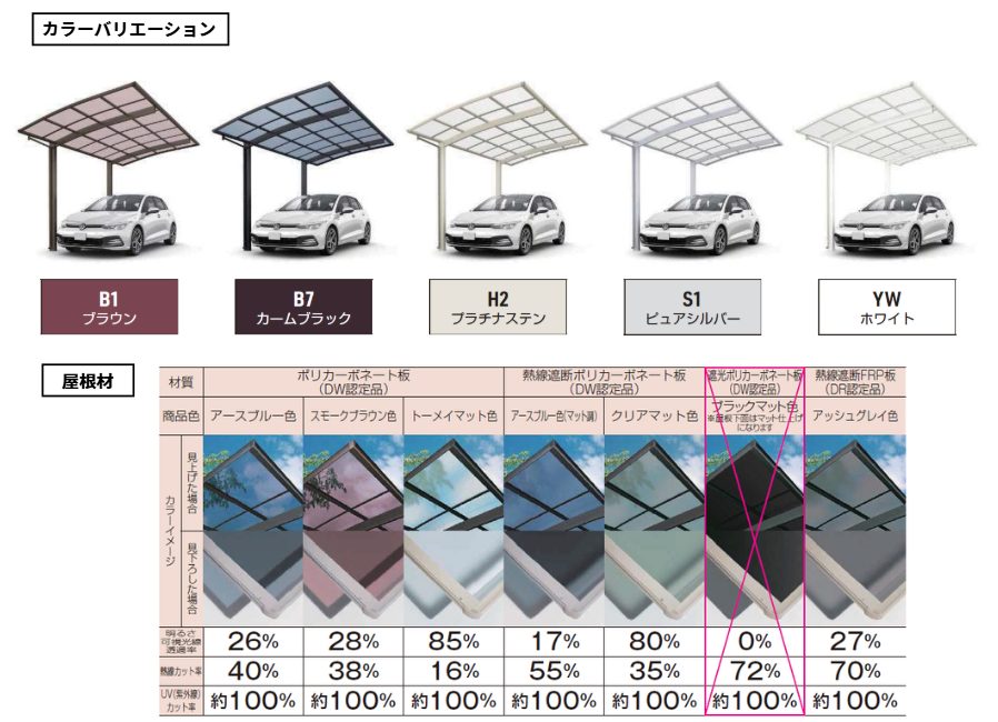 | 商品名 | アリュースZ750タイプ 2台用 51-54 基準風速V0=42m/s地域まで対応 熱線遮断ポリカ屋根 |