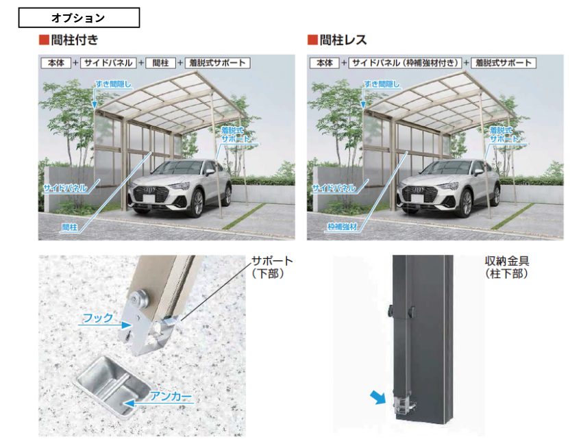10年買取保証対象商品 柱が邪魔にならない後方支持カーポート!