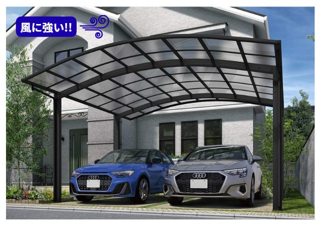 【YKKAP】風に強い!!アール屋根 2台用カーポート アリュースZ750タイプ 51-54