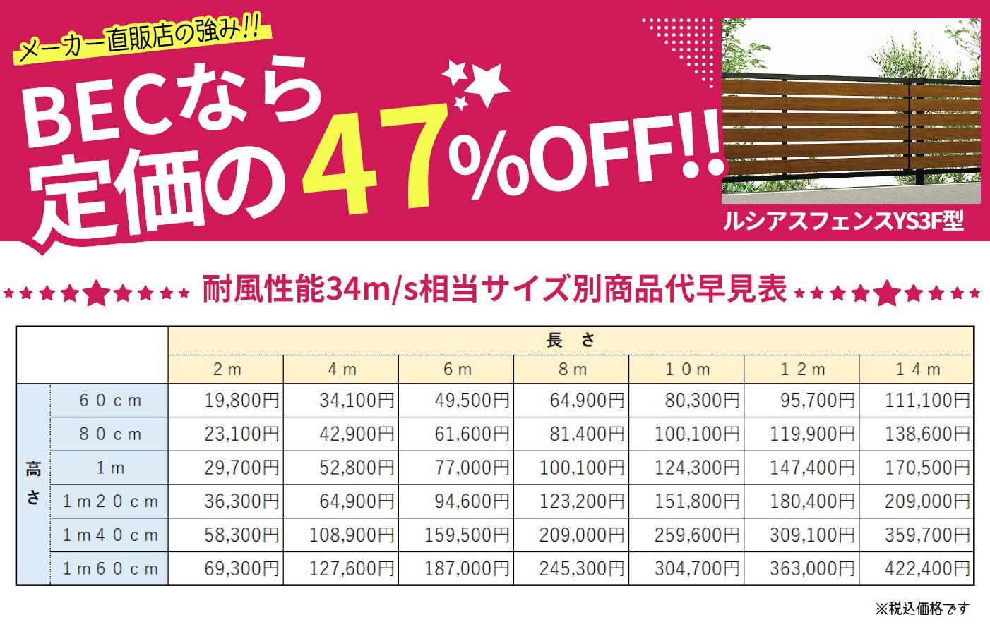 長さ2m分一式の金額です※耐風性能42m/s相当 BEC特価!!