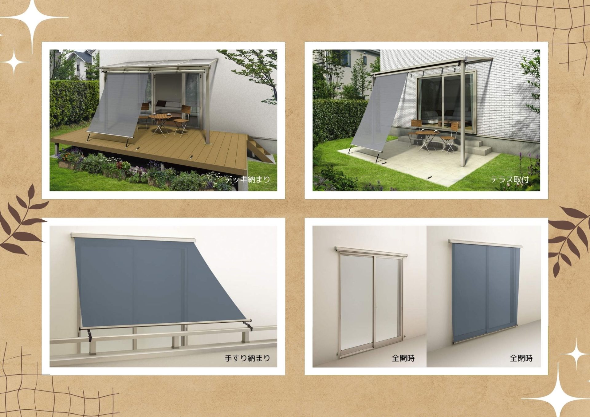 テラスやデッキに取り付ければお庭の活用の幅が広がりますね。