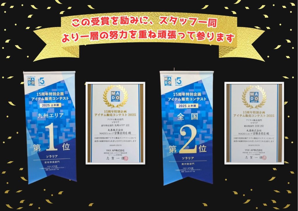 MADOショップ 補助金活用コンテスト2025 ★ソラリア前年伸長部門 九州エリア1位★ ★ソラリア絶対数部門 全国2位★ 受賞!!!