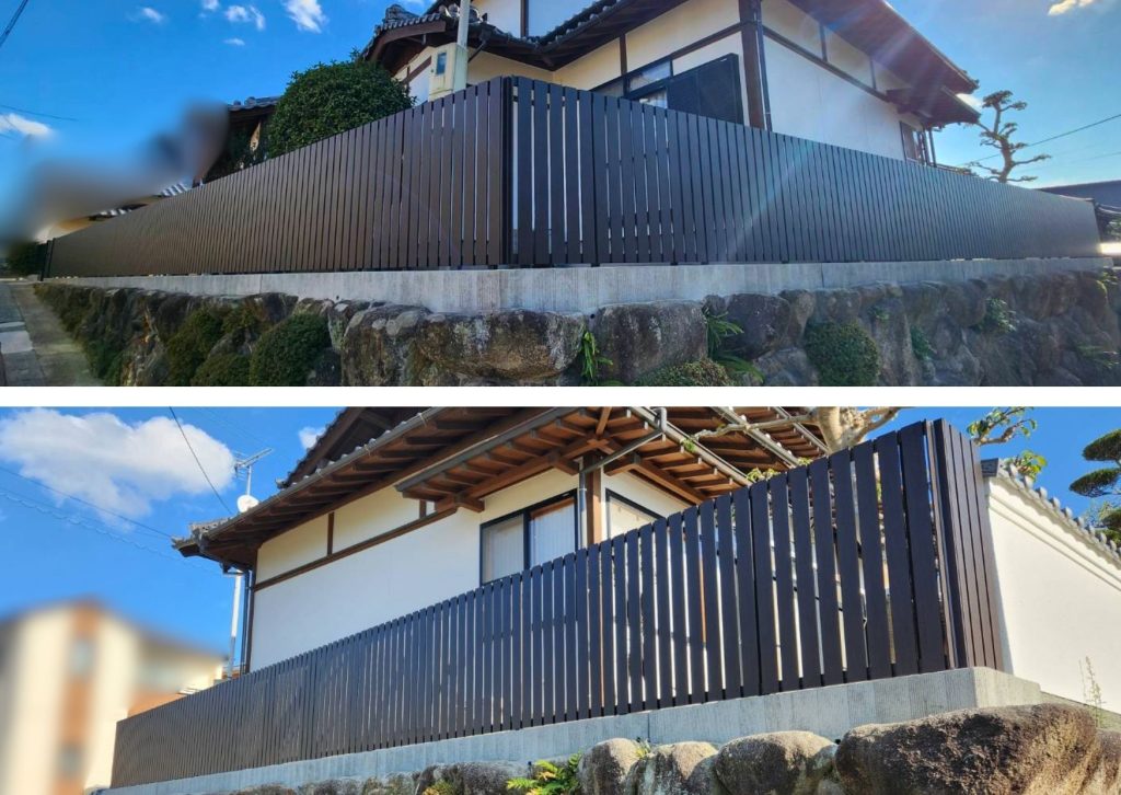 たて板格子のフェンスは斜めからの視線を遮るため、人通りの多い道路に面した箇所に取り付けても安心です😆🎶
